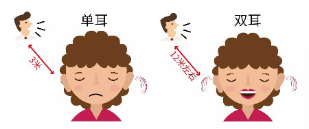 雙耳可以聽到非常遠(yuǎn)的聲音,有數(shù)據(jù)顯示,同樣一個聲音,單耳聆聽范圍不到10英尺(約3米),雙耳卻可以聽到大于40英尺(約12米)的距離。