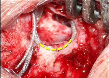 手術采用全身麻醉,手術切口前給予靜脈點滴抗生素。植入電極后進行電極阻抗測試和神經反應遙測(NRT)。內耳畸形等特殊病例使用EBAR監(jiān)測和面神經監(jiān)測。手術徑路多數(shù)采用面隱窩進路。一般采用耳后切口。切口分為兩層,表層為皮膚及皮下組織,深層為顳筋膜及肌骨膜瓣。整個皮瓣向后翻開,暴露乳突區(qū)骨皮質。用電鉆于乳突后上方顱骨表面制作接受/刺激器骨床。行單純乳突切除術,暴露砧骨短腳,以此為標志開放面隱窩,于圓窗龕前下方打開耳蝸鼓階。將接受刺激器入位骨床,將刺激電極插入耳蝸鼓階,參考電極置于顳肌下的顱骨表面。對耳蝸畸形(如Mondini畸形、共同腔畸形)及耳蝸骨化的病例手術方式做相應的變通。手術并發(fā)癥主要包括傷口感染、皮瓣壞死、面癱、腦膜炎和電極脫出。少數(shù)耳蝸內埋植電極者手術后有輕度的眩暈感,數(shù)日內多自行消失。