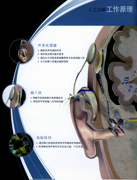 人工耳蝸(Cochlear Implant)是一種電子裝置,由體外言語處理器將聲音轉(zhuǎn)換為一定編碼形式的電信號,通過植入體內(nèi)的電極系統(tǒng)直接興奮聽神經(jīng)來恢復或重建聾人的聽覺功能。近年來,隨著電子技術(shù)、計算機技術(shù)、語音學、電生理學、材料學、耳顯微外科學的發(fā)展,人工耳蝸已經(jīng)從實驗研究進入臨床應(yīng)用。現(xiàn)在全世界已把人工耳蝸作為治療重度聾至全聾的常規(guī)方法。
